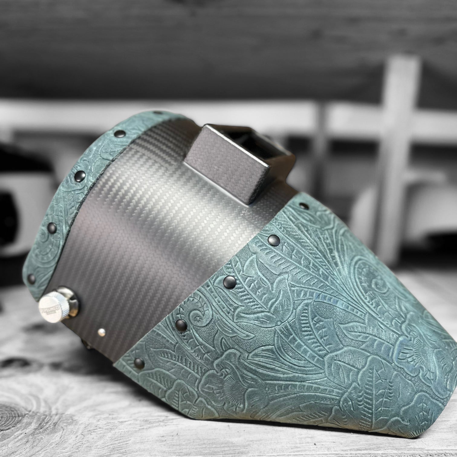 Carbon Fiber Welding Hood Chopped Top and Bottom with Premium Leather