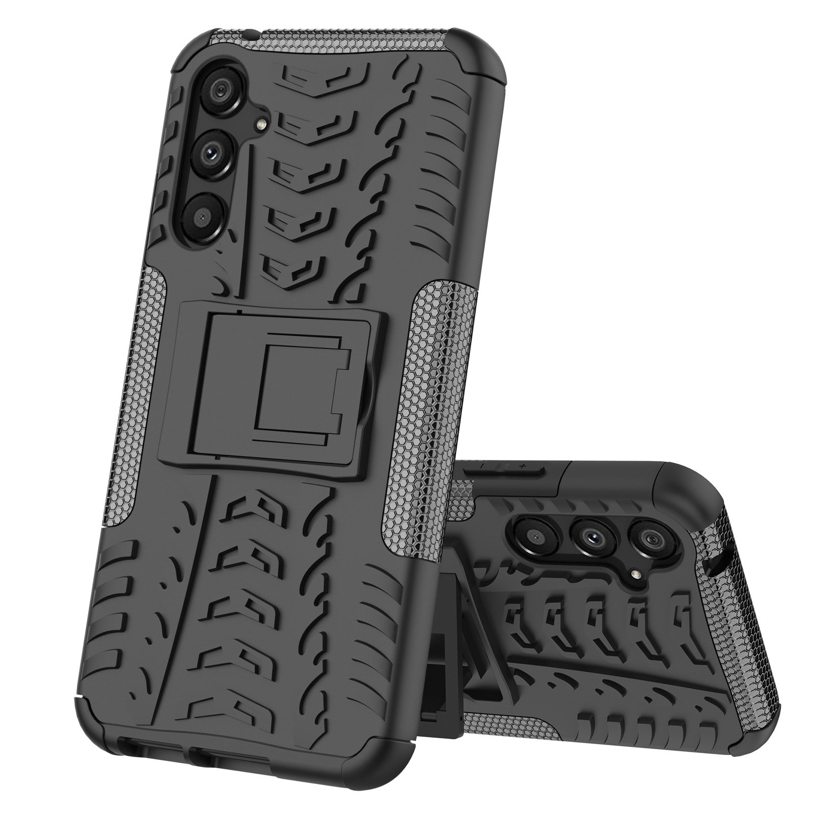Case for Samsung Galaxy A34. Honeycomb design for a unique look. Bi-material design with a rigid polycarbonate back and flexible silicone contour. Reinforced corners. Raised camera edges. Accessible connectors. Redefined buttons.